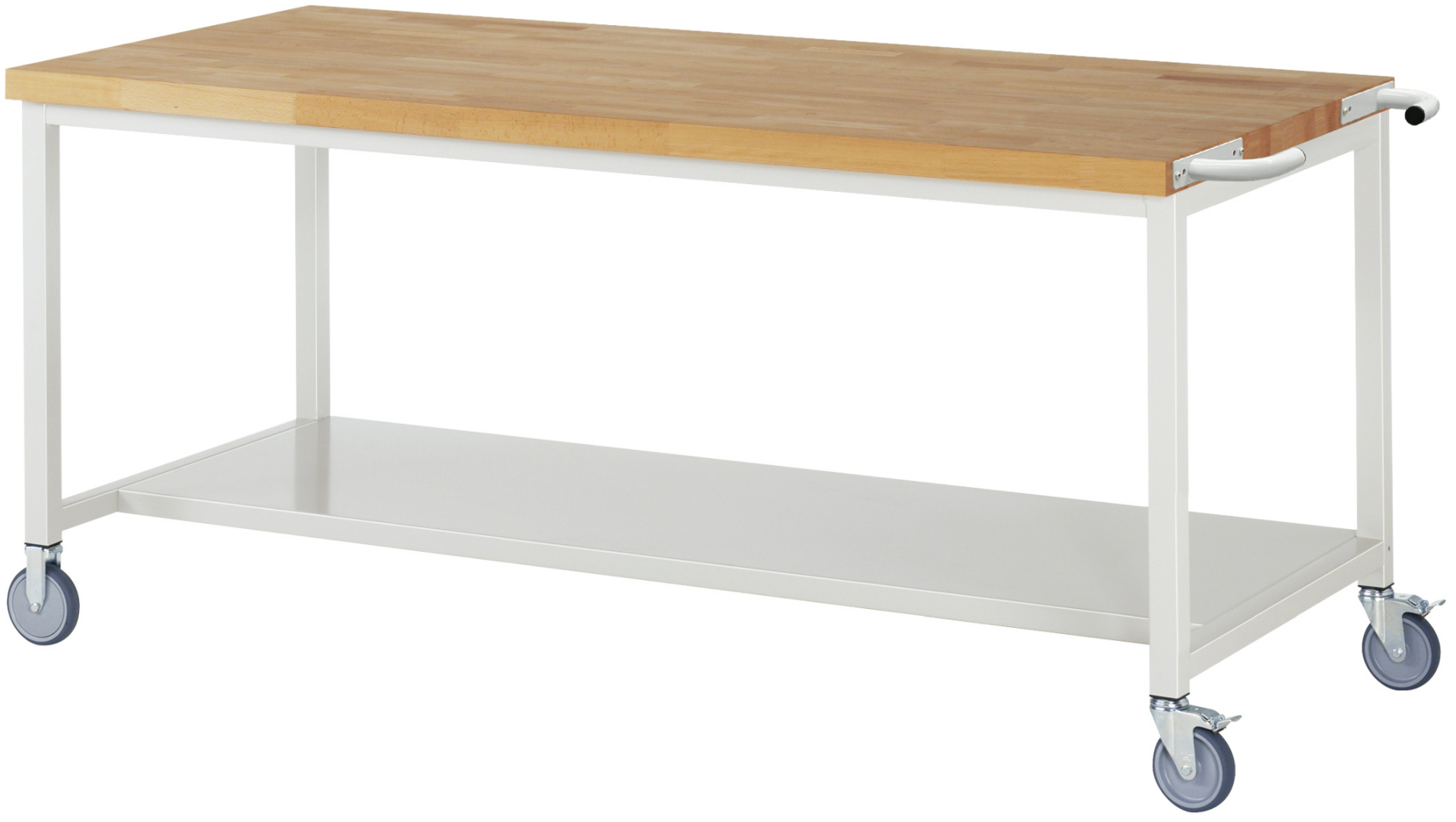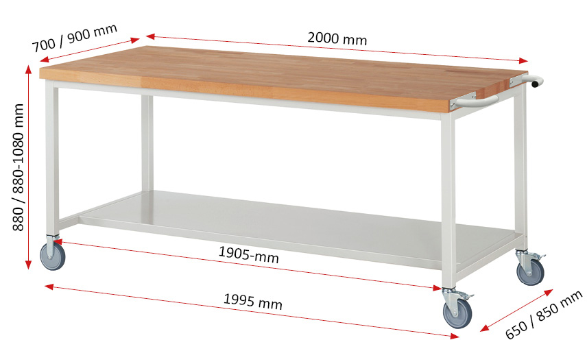 Fahrbare Werkbank Modell 8000 schwarz, BxTxH 2000x900x880-1080 mm, Buche-Massiv Arbeitsplatte 40 mm