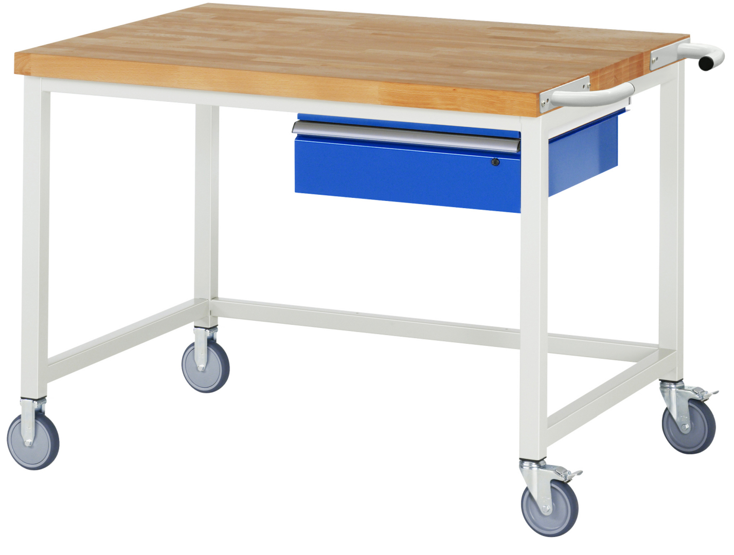 Fahrbare Werkbank Modell 8001 schwarz, BxTxH 1250x900x880-1080 mm, Buche-Massiv Arbeitsplatte 40 mm, 1 Schublade mit Auszug 90 %