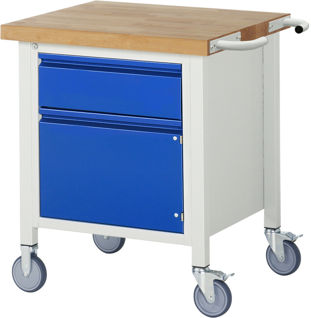 Fahrbare Werkbank - Modell 8002 BASIC schwarz-rot, BxTxH 750x700x880 mm, Buche-Massiv Arbeitsplatte 40 mm, 1 Schublade mit Auszug 90 %