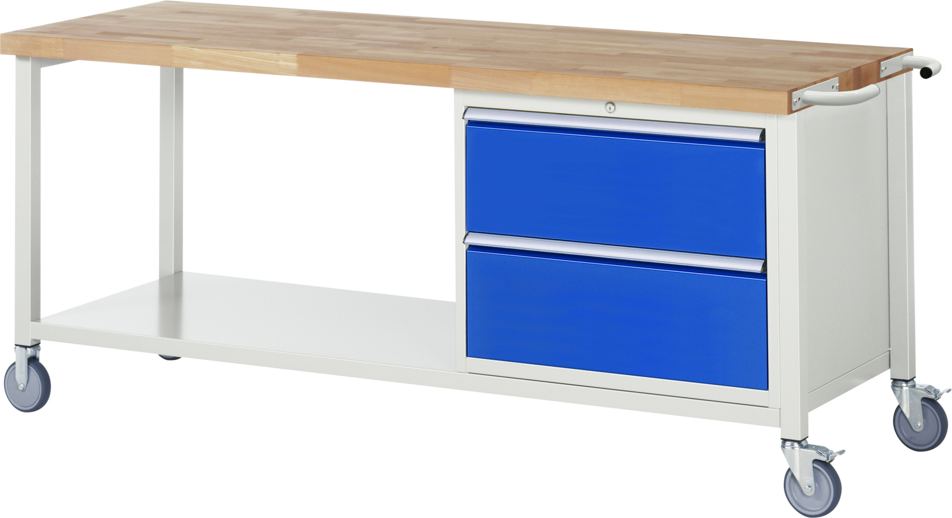 Fahrbare Werkbank Modell 8255 schwarz-rot, BxTxH 2000x700x880 mm, Buche-Massiv Arbeitsplatte 40 mm, 2 Schubladen mit Auszug 90 %