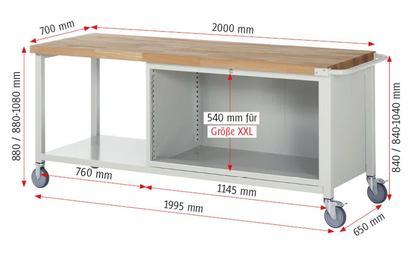 - BxTxH 2000x700x880-1080 mm