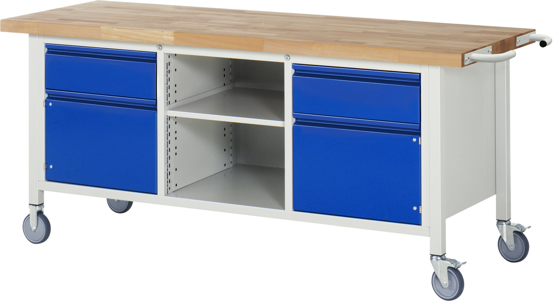 Fahrbare Werkbank - Modell 8561 BASIC schwarz, BxTxH 2000x700x880 mm, Buche-Massiv Arbeitsplatte 40 mm, 2 Schubladen mit Auszug 90 %