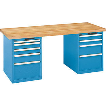 Werkbank, BuchenPlatte:, Breite 200 cm, Tiefe 80 cm, Höhe 85 cm, 9 Schublade(n), Platte: Buche-Riegel