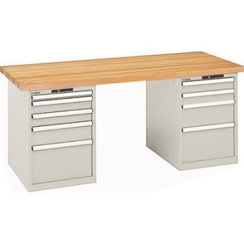Werkbank, Buchenplatte - Code Lock - Tragkraft 1.000 kg - 850 x 2.000 x 800 mm (HxBxT) - 9 Schubladen - lichtgrau