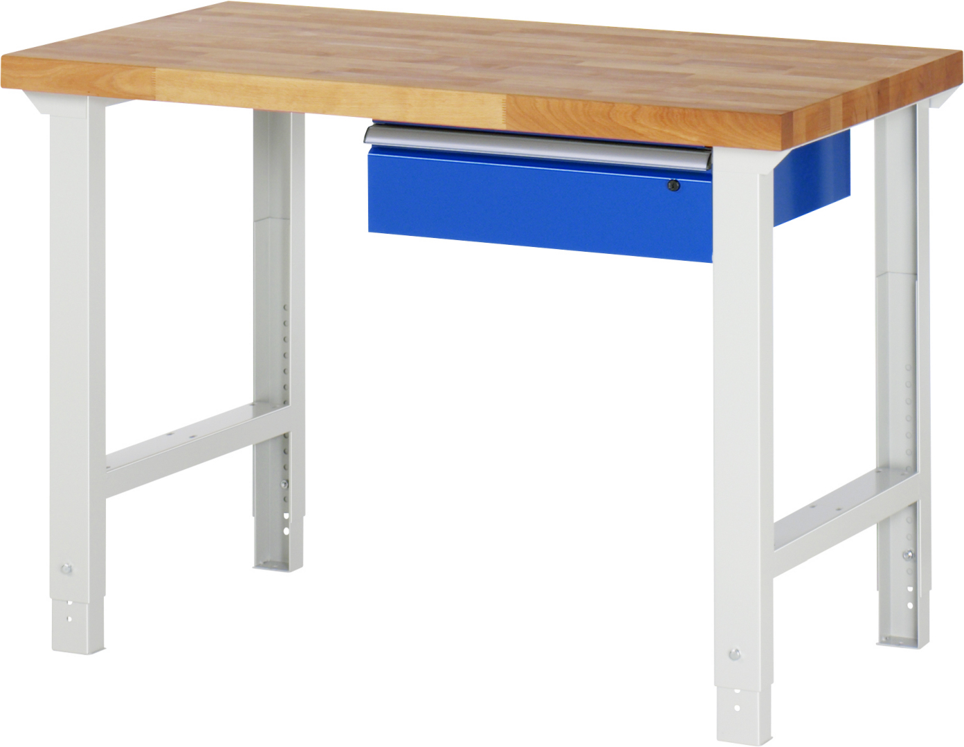 Werkbank Modell 7001 schwarz-rot, BxTxH 1250x700x790-1140 mm, Buche-Massiv Arbeitsplatte 40 mm, 1 Schublade mit Auszug 90 %