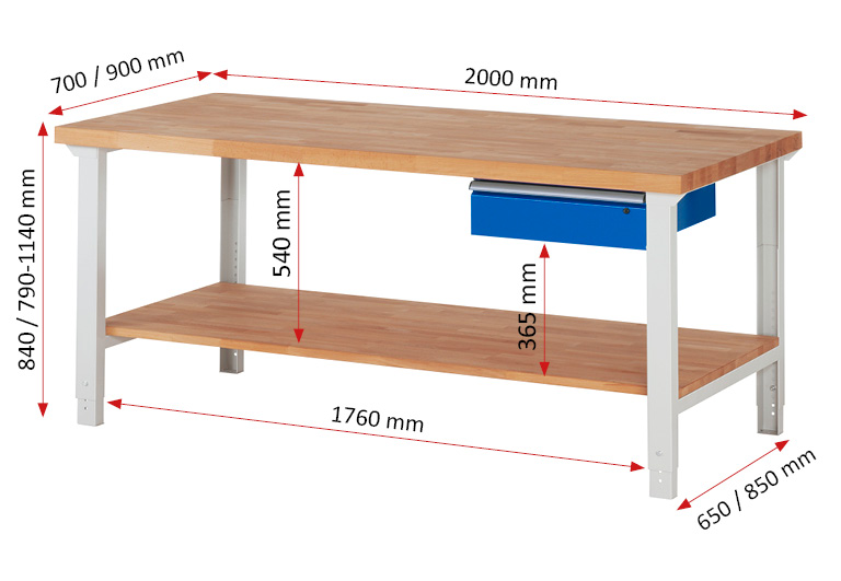 - BxTxH 2000x700x790-1140 mm