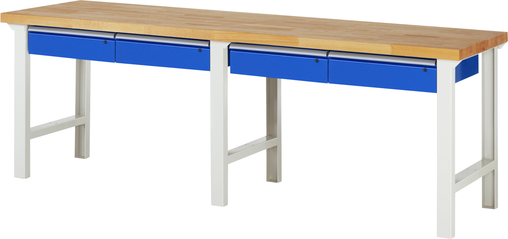 Werkbank Modell 7002 schwarz-rot, BxTxH 2500x700x840 mm, Buche-Massiv Arbeitsplatte 40 mm, 4 Schubladen mit Auszug 90 %