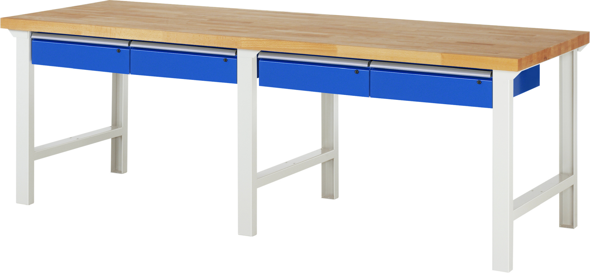 Werkbank Modell 7002 schwarz-rot, BxTxH 2500x900x840 mm, Buche-Massiv Arbeitsplatte 40 mm, 4 Schubladen mit Auszug 90 %