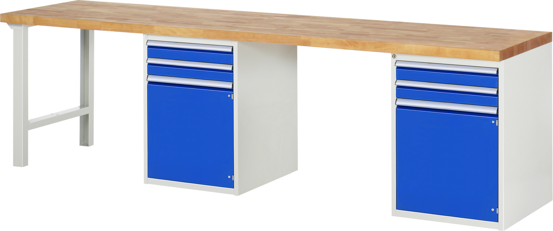 Werkbank Modell 7503 rot, BxTxH 3000x700x890 mm, Buche-Massiv Arbeitsplatte 40 mm, 4 Schubladen mit Vollauszug 100 % und SoftClosing