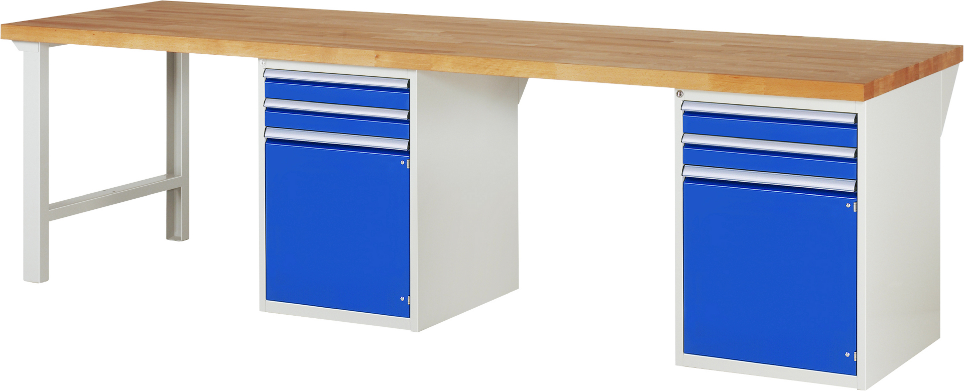 Werkbank Modell 7503 schwarz, BxTxH 3000x900x890 mm, Buche-Massiv Arbeitsplatte 40 mm, 4 Schubladen mit Auszug 90 %