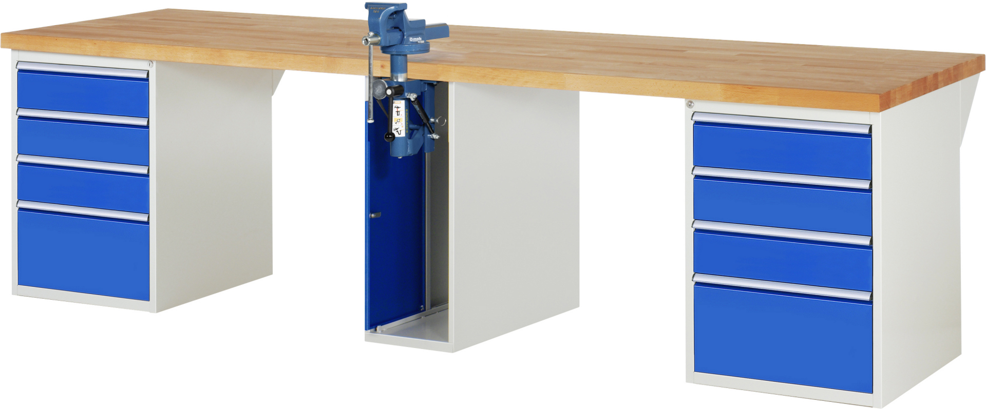 Werkbank Modell 7510 schwarz, BxTxH 3000x900x890 mm, Buche-Massiv Arbeitsplatte 40 mm, 8 Schubladen mit Vollauszug 100 % und SoftClosing