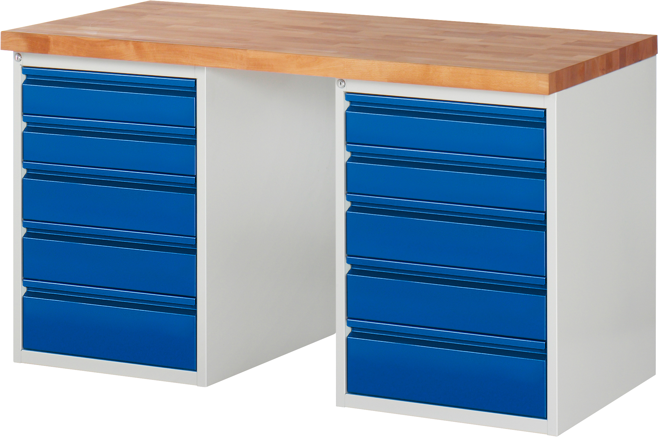 Werkbank - Modell 7513 BASIC schwarz, BxTxH 1500x700x890 mm, Buche-Massiv Arbeitsplatte 40 mm, 10 Schubladen mit Auszug 90 %