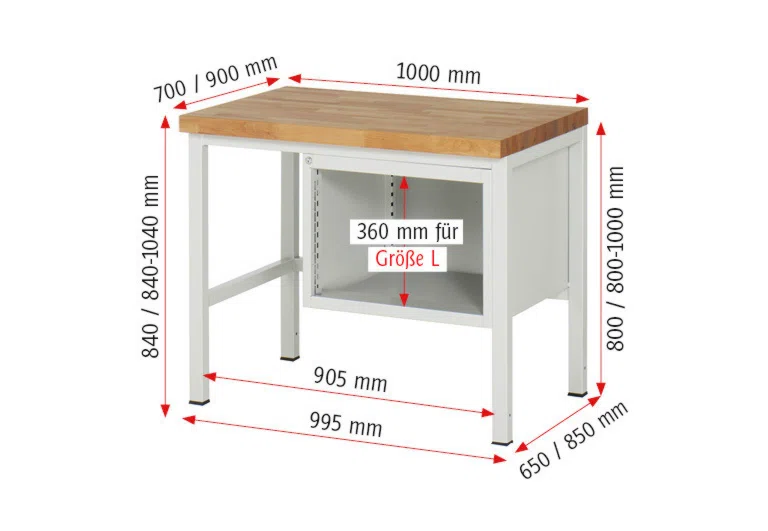 - Maße des Systemunterbaus: B995 x T850 x H800 mm.