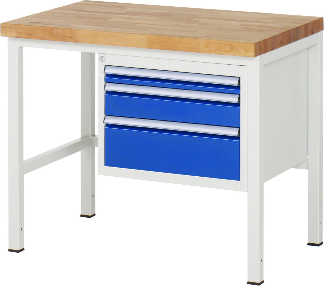 Werkbank Modell 8126 schwarz, BxTxH 1000x700x840-1040 mm, Buche-Massiv Arbeitsplatte 40 mm, 3 Schubladen mit Vollauszug 100 % und SoftClosing