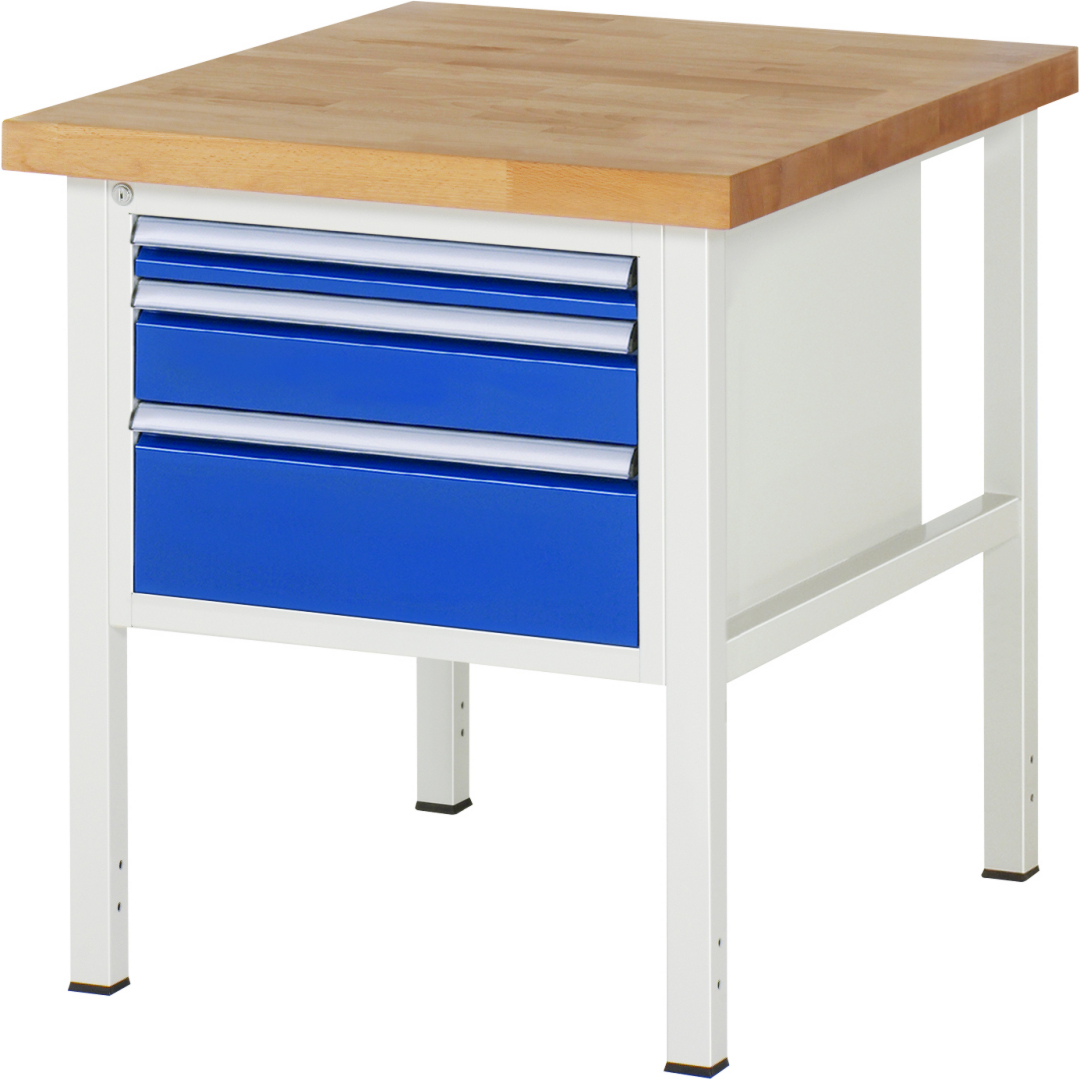 Werkbank Modell 8126 schwarz, BxTxH 750x900x840-1040 mm, Buche-Massiv Arbeitsplatte 40 mm, 3 Schubladen mit Vollauszug 100 % und SoftClosing