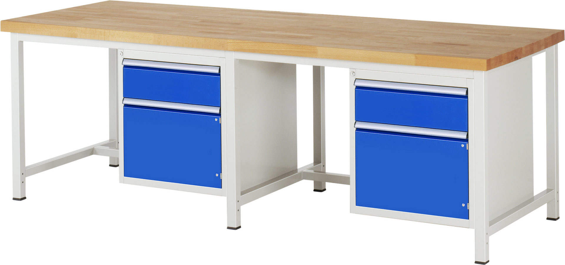 Werkbank Modell 8152 schwarz-rot, BxTxH 2500x900x840-1040 mm, Buche-Massiv Arbeitsplatte 40 mm, 2 Schubladen mit Auszug 90 %