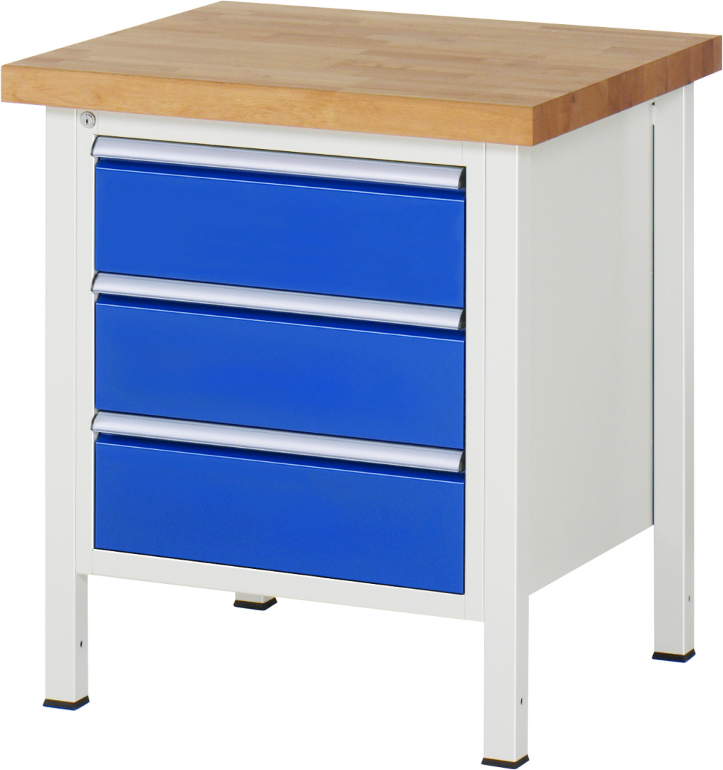 Werkbank Modell 8157 schwarz, BxTxH 750x700x840-1040 mm, Buche-Massiv Arbeitsplatte 40 mm, 3 Schubladen mit Vollauszug 100 % und SoftClosing