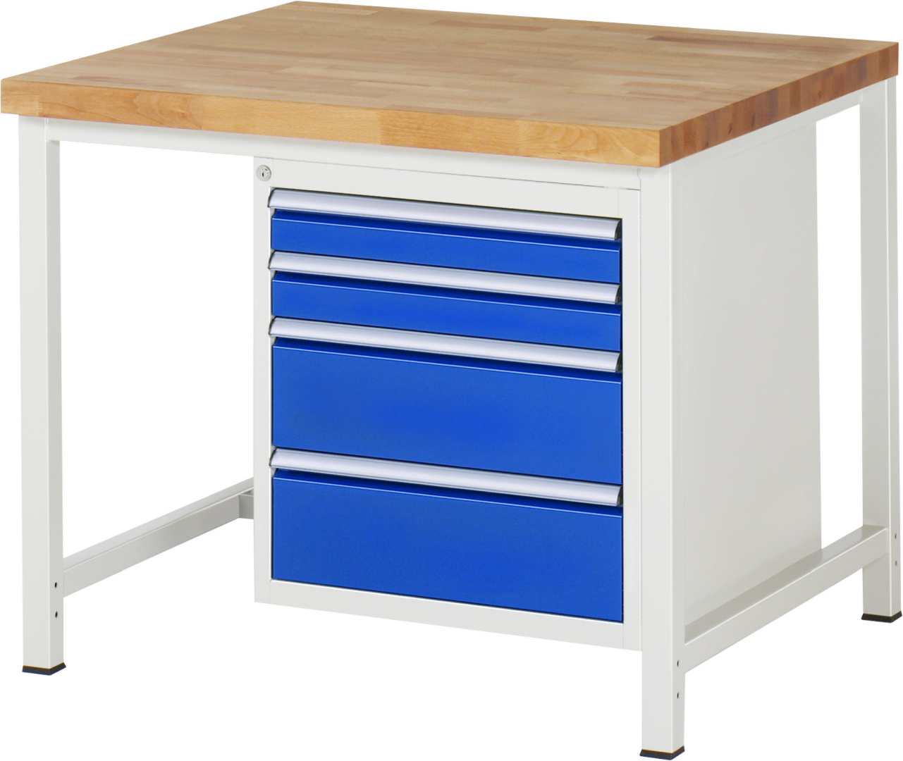Werkbank Modell 8161 schwarz, BxTxH 1000x900x840 mm, Buche-Massiv Arbeitsplatte 40 mm, 4 Schubladen mit Vollauszug 100 % und SoftClosing