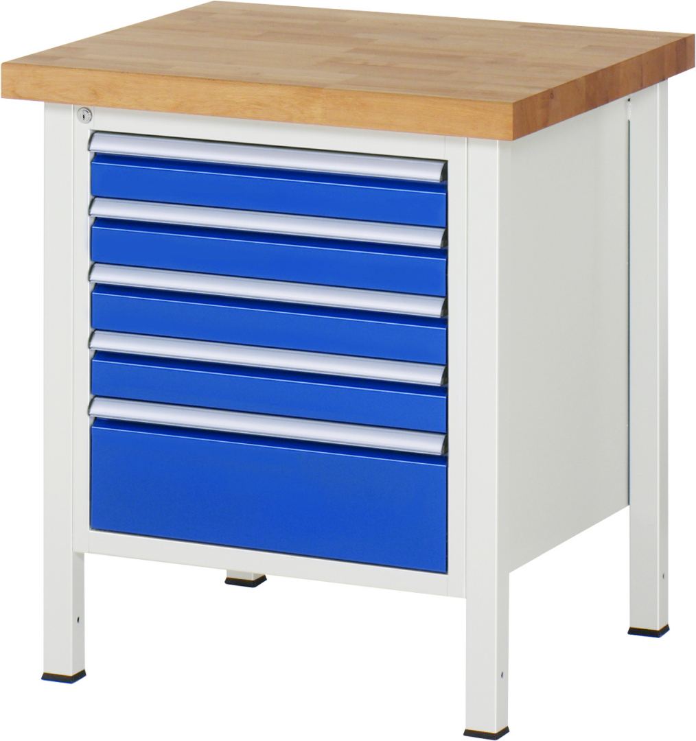 Werkbank Modell 8168 schwarz, BxTxH 750x700x840-1040 mm, Buche-Massiv Arbeitsplatte 40 mm, 5 Schubladen mit Vollauszug 100 % und SoftClosing