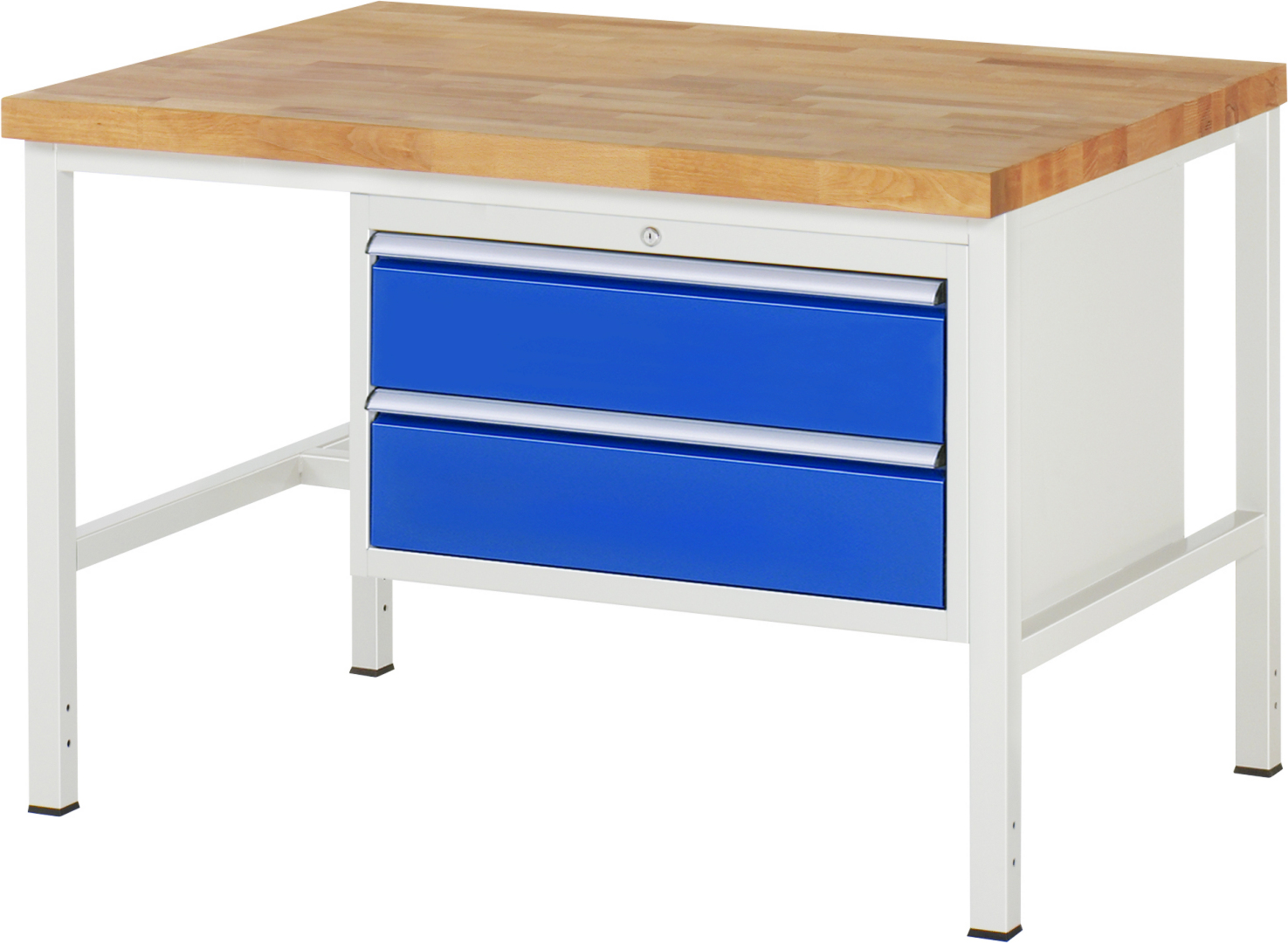 Werkbank Modell 8225 schwarz-rot, BxTxH 1250x900x840-1040 mm, Buche-Massiv Arbeitsplatte 40 mm, 2 Schubladen mit Vollauszug 100 % und SoftClosing