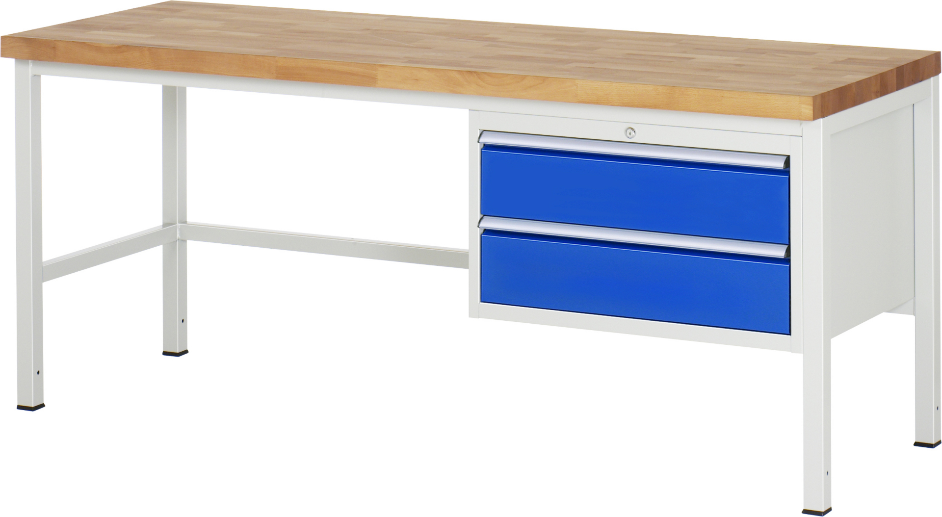 Werkbank Modell 8225 schwarz-rot, BxTxH 2000x700x840 mm, Buche-Massiv Arbeitsplatte 40 mm, 2 Schubladen mit Auszug 90 %