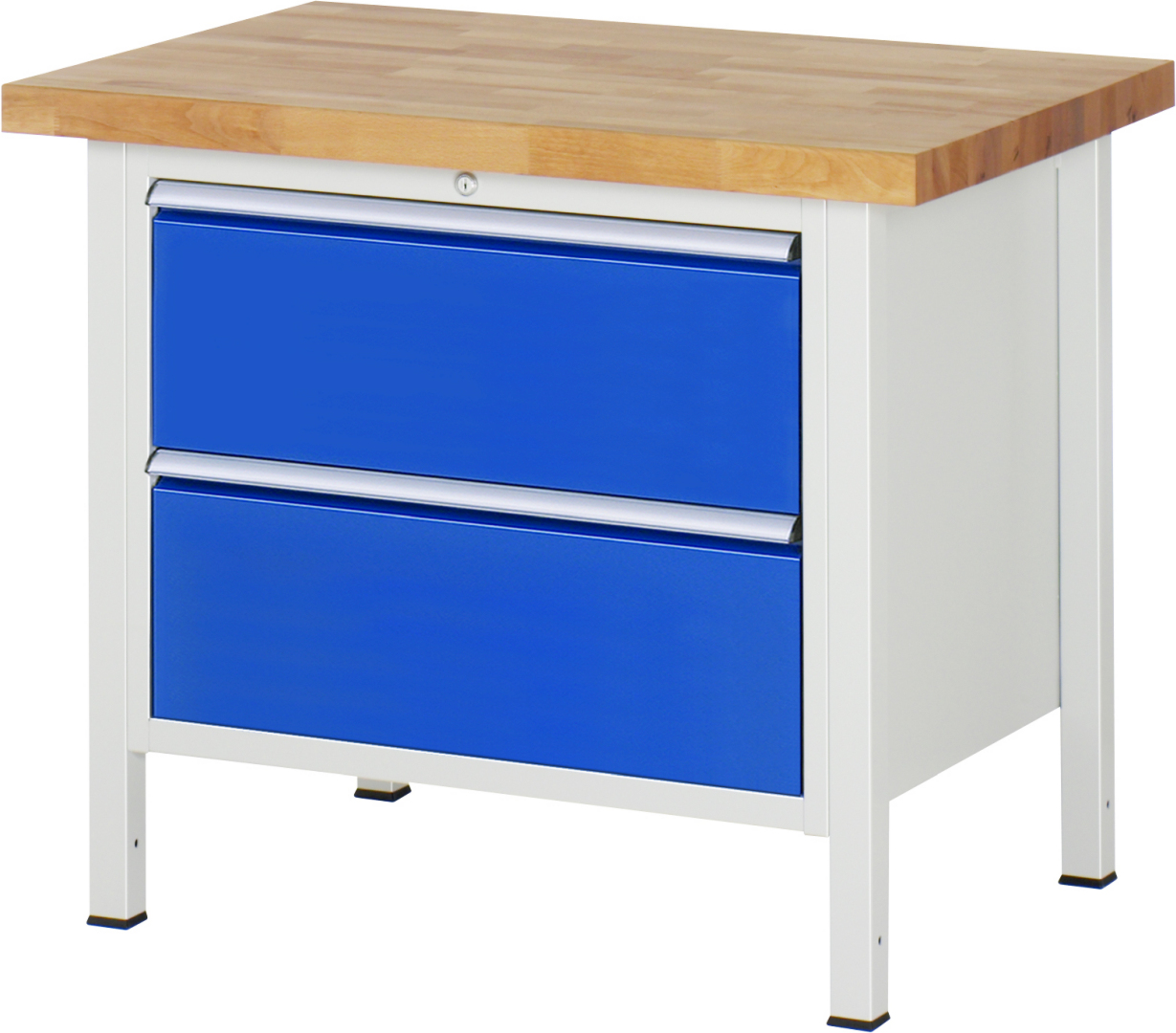 Werkbank Modell 8255 schwarz, BxTxH 1000x700x840 mm, Buche-Massiv Arbeitsplatte 40 mm, 2 Schubladen mit Auszug 90 %
