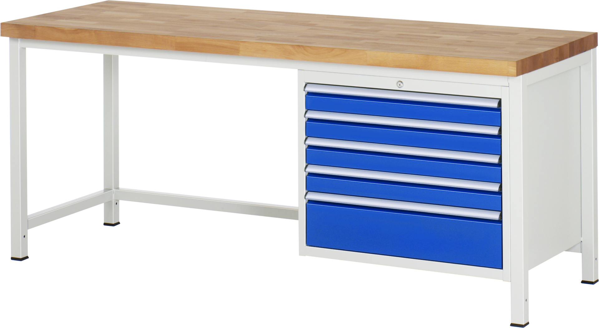 Werkbank Modell 8268 schwarz-rot, BxTxH 2000x700x840-1040 mm, Buche-Massiv Arbeitsplatte 40 mm, 5 Schubladen mit Auszug 90 %