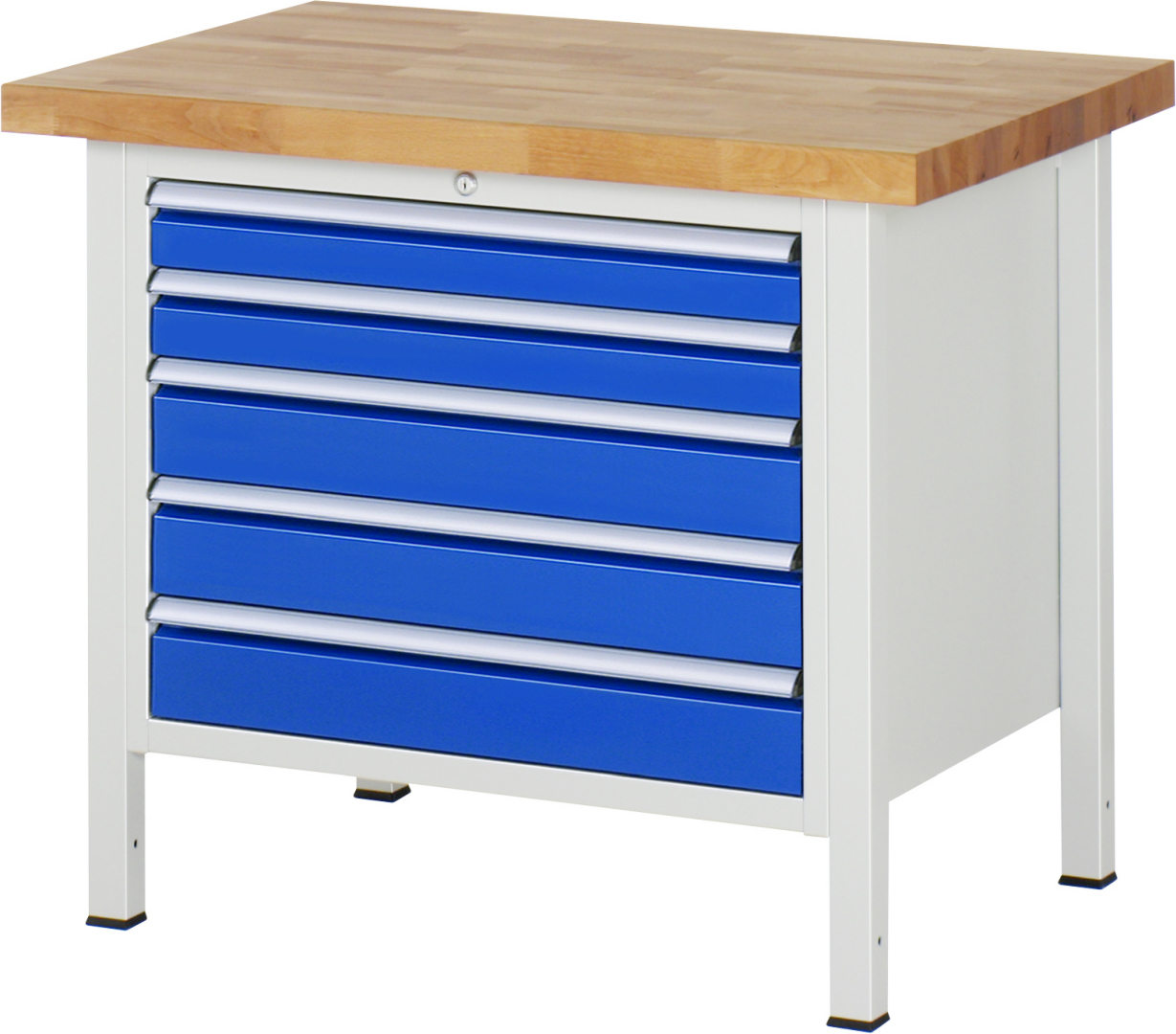 Werkbank Modell 8271 schwarz, BxTxH 1000x700x840 mm, Buche-Massiv Arbeitsplatte 40 mm, 5 Schubladen mit Auszug 90 %