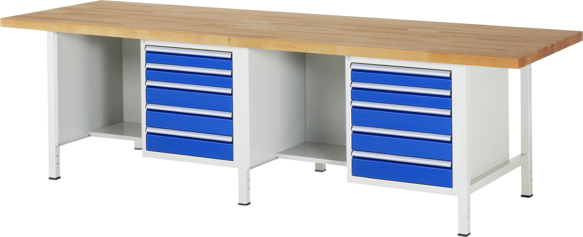 Werkbank Modell 8454 schwarz-rot, BxTxH 3000x900x840 mm, Buche-Massiv Arbeitsplatte 40 mm, 10 Schubladen mit Auszug 90 %