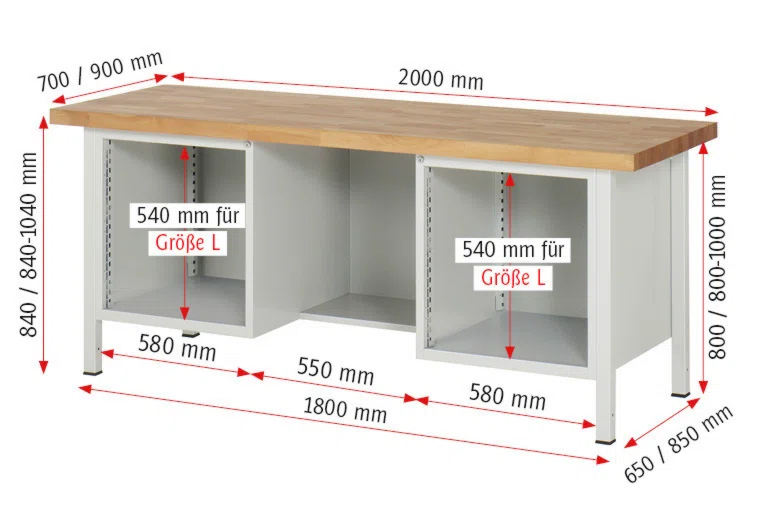 | Typ/Modell | Werkbänke mit Unterbau |
