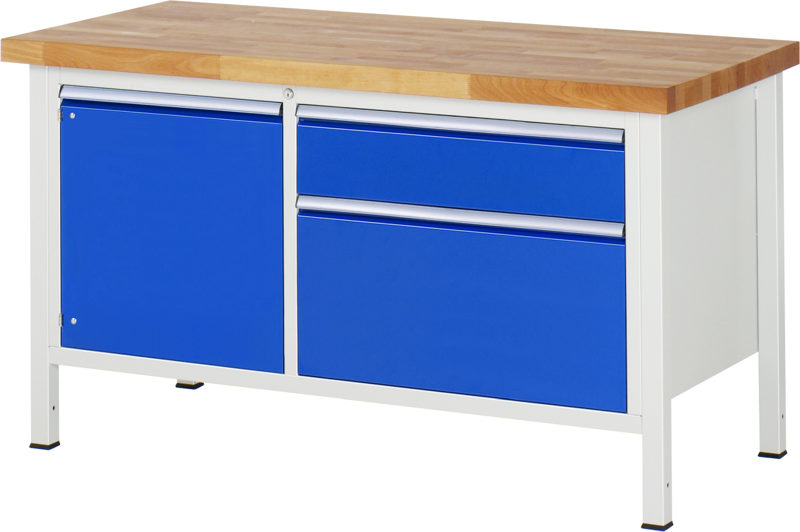 Werkbank Modell 8651 schwarz, BxTxH 1500x700x840 mm, Buche-Massiv Arbeitsplatte 40 mm, 2 Schubladen mit Auszug 90 %