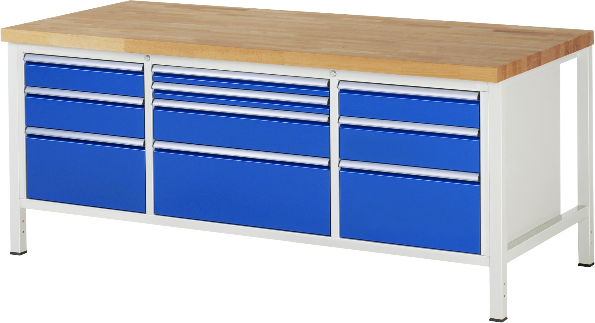 Werkbank Modell 8756 schwarz-rot, BxTxH 2000x900x840 mm, Buche-Massiv Arbeitsplatte 40 mm, 10 Schubladen mit Vollauszug 100 % und SoftClosing