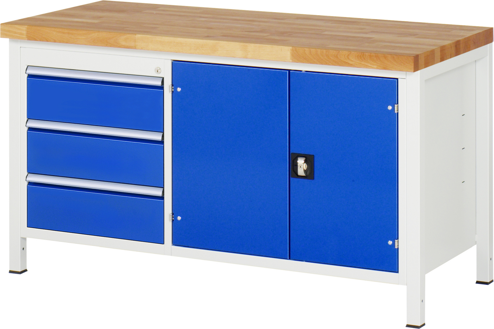 Werkbank Modell 8904 schwarz, BxTxH 1500x700x840-1040 mm, Buche-Massiv Arbeitsplatte 40 mm, 3 Schubladen mit Vollauszug 100 % und SoftClosing