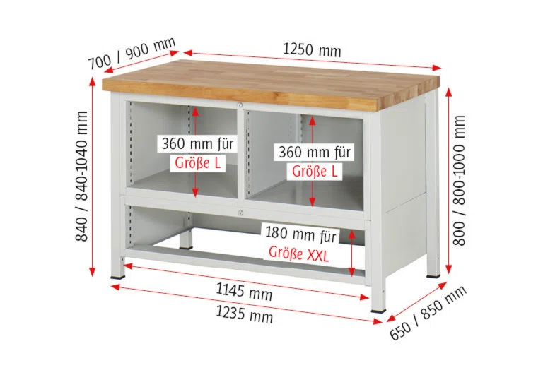 | Typ/Modell | Werkbänke mit Unterbau |