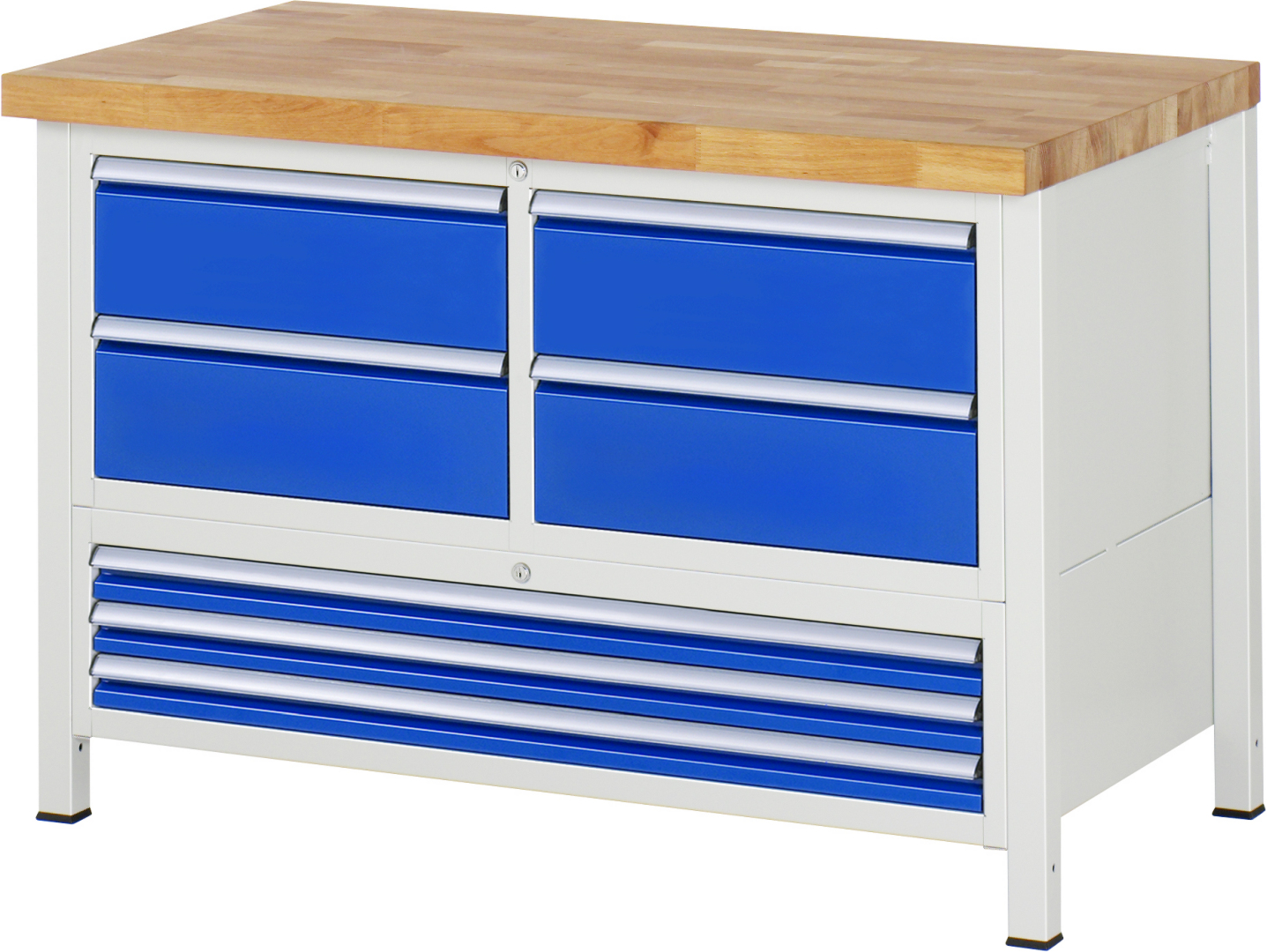 Werkbank Modell 8934 schwarz-rot, BxTxH 1250x700x840 mm, Buche-Massiv Arbeitsplatte 40 mm, 7 Schubladen mit Auszug 90 %