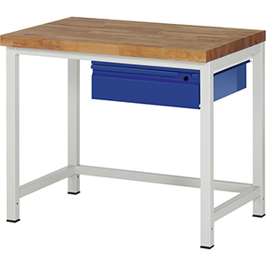 Werkbank schwarz-rot, BxTxH 1000x700x840-1040 mm, Platte Buche 40 mm, 1 Schublade 150 mm, RAL 9011/3000