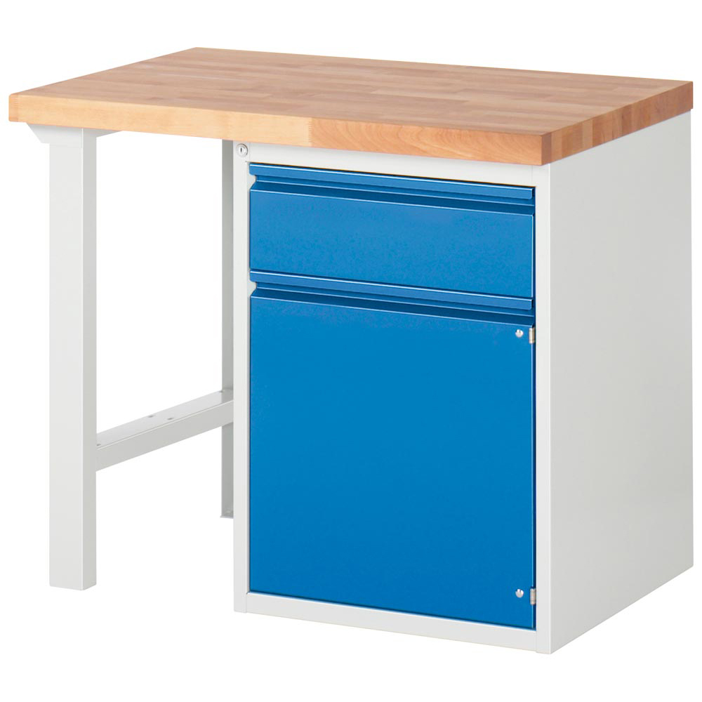 Werkbank schwarz-rot, BxTxH 1000xT700xH890 mm, Platte Buche 40 mm 40 mm, 1 Schublade 180 mm, 1 Tür 540 mm, 1 Fachboden, RAL 9011/3000