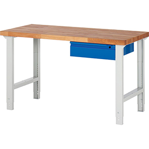 Werkbank schwarz-rot, BxTxH 1500x700x790-1140 mm, Platte Buche 40 mm 40 mm, 1 Hängeschublade 150 mm, RAL 9011/3000