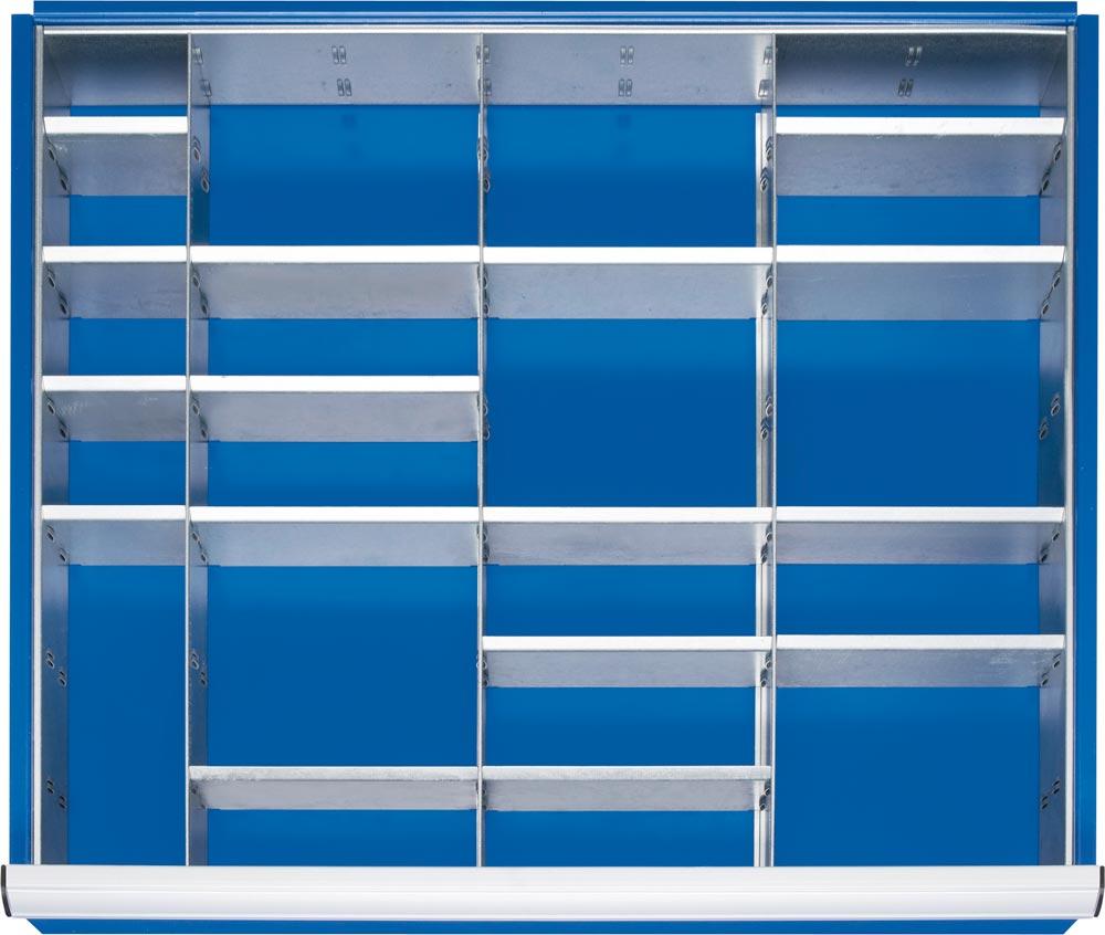Einteilungssortiment für Schubladen BxT 680x560 mm: 3 Trenn- und 16 Steckwände, für Fronthöhe 180-270 mm