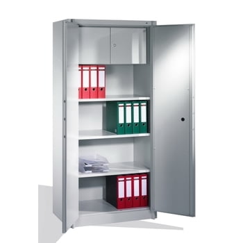 Aktenschrank, Büroschrank, Feuerschutzklasse A1, 3 Fachböden und Schließfach einflügelig, Korpus lichtgrau, Türen schwarzgrau, 1.950 x 930 x 500 mm (HxBxT)