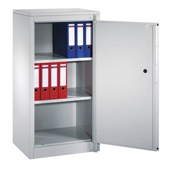 Aktenschrank, Büroschrank, Feuerschutzklasse A1, DIN 4102, 2 Fachböden, Korpus lichtgrau, Türen rubinrot, 1.226 x 650 x 500 mm (HxBxT)