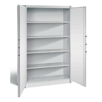 Aktenschrank, Büroschrank, Feuerschutzklasse A1, DIN 4102, 4 Fachböden, Korpus lichtgrau, Türen rubinrot, 1.950 x 1.200 x 500 mm (HxBxT)