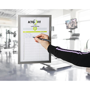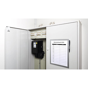 · Direktes Beschriften des Dokuments möglich, da Aussparung auf der Vorderseite · Vollflächige Selbstklebefolie auf der Rückseite · Einfaches Anbringen auf glatten, tragfähigen Oberflächen ohne Hilfsmittel kann z. B. von Glas wieder entfernt werden · Aufklappbare, magnetische Vorderseite · Mit Stiftehalter für alle Stifte mit Befestigungsclip