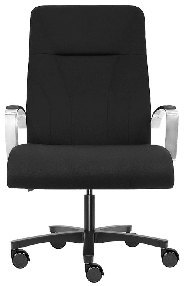 Schwerlastdrehstuhl, Sitz-BxTxH 670x520x460-580 mm, Lehnenhöhe 800 mm, starre Mechanik, Traglast 300 kg, Armlehne, Alu-Fußkreuz, Stoff schwarz