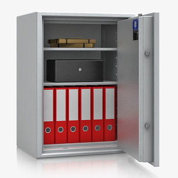 Dokumententresor, Geldschrank, Safe, VdS Klasse 1, 60 Minuten feuerfest, Türen 1-flügelig, 2 Fachböden, 801 x 589 x 471 mm (HxBxT), Farbe lichtgrau