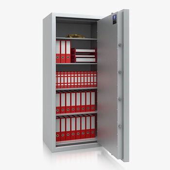 Die kompakte Konstruktion garantiert einen definierten Einbruchschutz und schützt vor Angriffen mit mechanisch und thermisch wirkenden Einbruchwerkzeugen. Nach fachgerechter Bodenverankerung kann der Inhalt des Schrankes privat bis zu 200.000 EUR und gewerblich bis zu 100.000 EUR versichert werden. Der Tresor kann zusätzlich mit Einbruchmeldeanlagen-Komponenten ausgestattet werden.