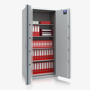 Die kompakte Konstruktion garantiert einen definierten Einbruchschutz und schützt vor Angriffen mit mechanisch und thermisch wirkenden Einbruchwerkzeugen. Nach fachgerechter Bodenverankerung kann der Inhalt des Schrankes privat bis zu 200.000 EUR und gewerblich bis zu 100.000 EUR versichert werden. Der Tresor kann zusätzlich mit Einbruchmeldeanlagen-Komponenten ausgestattet werden.