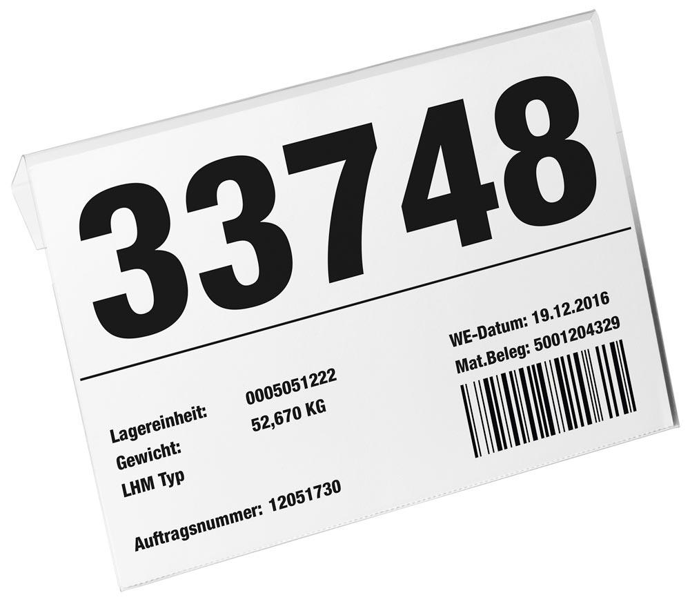 Kennzeichnungstasche, transparente Hartfolie, stabile Falz, 1/2 A5 quer, VE 10 Stück, Mindestabnahme 5 VE
