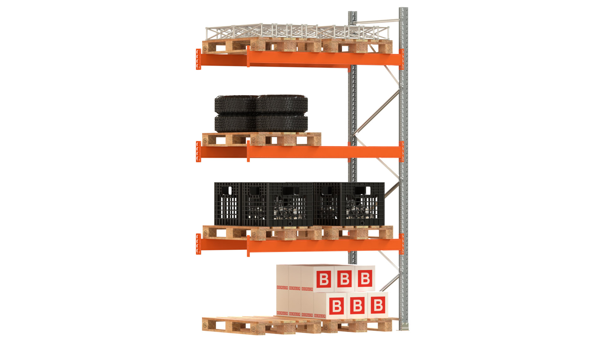 Palettenregal ARTUS - Anbaufeld - Breite 198,5 cm - Höhe 350 cm - Tiefe 110 cm - 3 Träger Ebenen