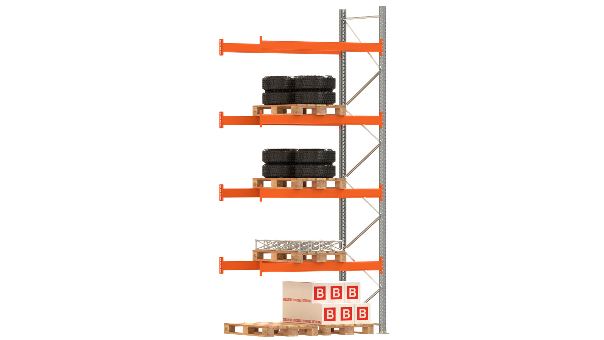 Palettenregal ARTUS - Anbaufeld - Breite 198,5 cm - Höhe 450 cm - Tiefe 110 cm - 4 Träger Ebenen